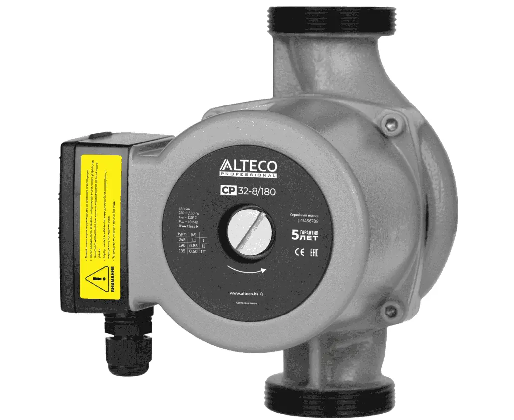 Циркуляционный насос Alteco (Алтеко) CP 32-6/180 - предназначен для принудительной циркуляции теплоносителя в системах отопления закрытого и открытого типов. Перекачивая теплоноситель, он позволяет достичь быстрого и равномерного нагрева системы отопления. Насос и двигатель представляют собой единое целое, без уплотнения вала и с двумя уплотнительными прокладками. Подшипники насоса смазываются перекачиваемой жидкостью.
