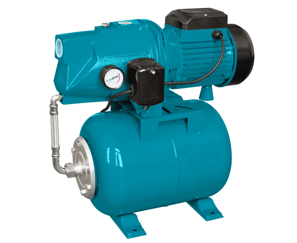 Насосная станция Alteco (Алтеко) Jet-PT 1100 - разработана для создания автономной системы подачи чистой воды в частном доме, на загородном участке, и для повышения давления в существующих централизованных системах водоснабжения. Насосная станция состоит из: насоса, автоматики управления, гидроаккумулятора. Насос со встроенным эжектором сочетает преимущества как центробежных так и самовсасывающих насосов. Гидроаккумулятор агрегата служит для аккумулирования воды под давлением и сглаживания гидроударов.
