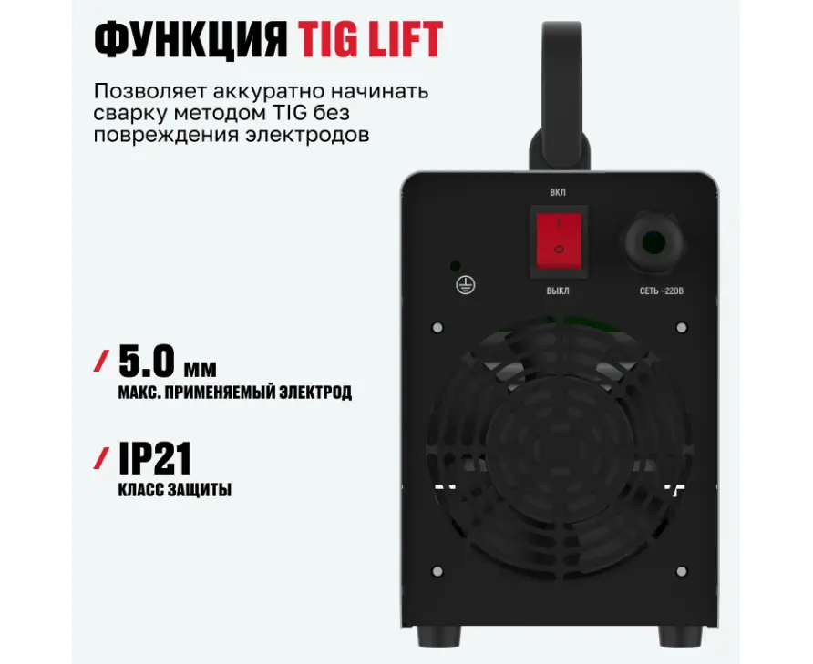 - Функция TIG LIFT – позволяет аккуратно начинать сварку методом TIG без повреждения электродов