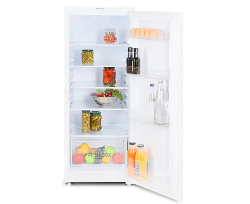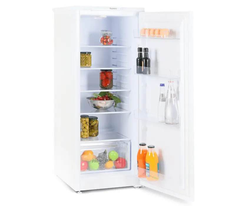 Однокамерный холодильник Бирюса 411 - узкий однокамерный холодильник без морозильного отделения.