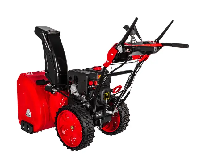 Самоходный — колёса или гусеницы приводятся в движение двигателем, что упрощает уборку снега.