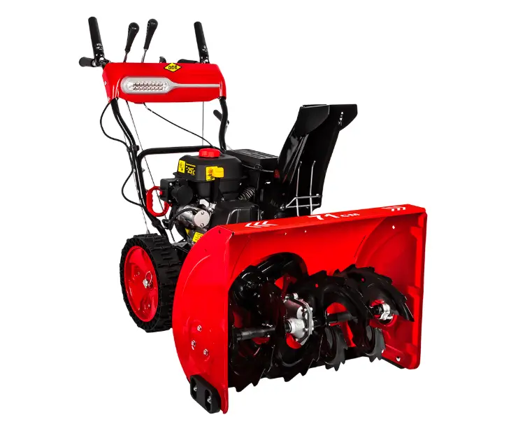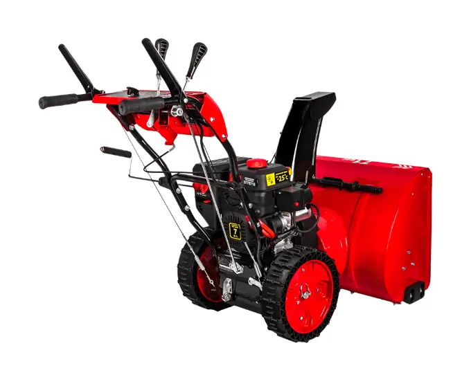Самоходный — колёса или гусеницы приводятся в движение двигателем, что упрощает уборку снега.