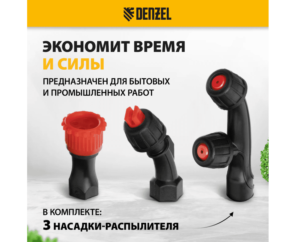 - Функциональность — в комплекте имеются 3 насадки-распылителя, а интенсивность струи регулируется, что позволяет выбрать оптимальный режим работы.