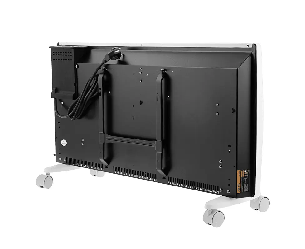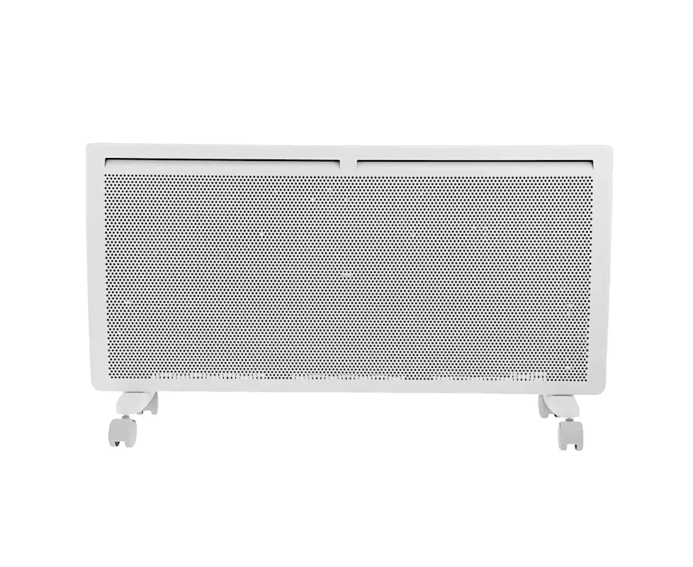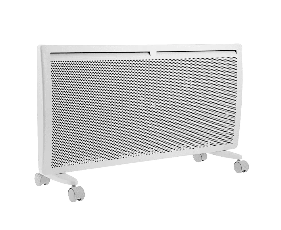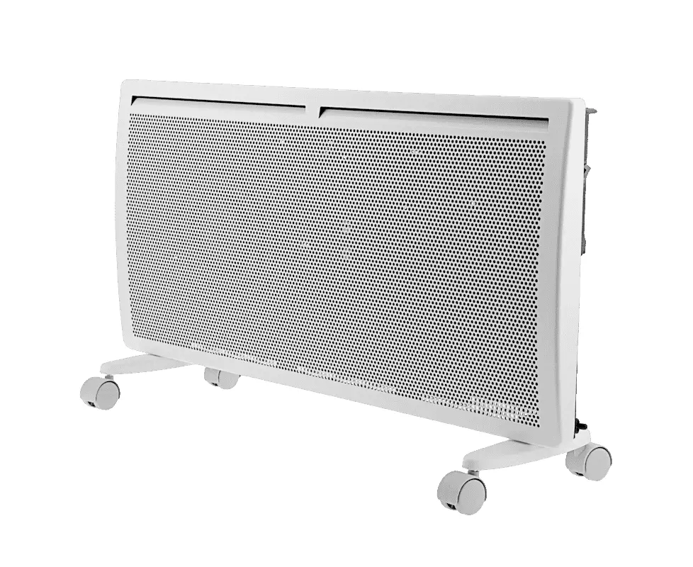 - Высокая энергоэффективность — гибридный нагревательный элемент излучает инфракрасное тепло и одновременно обеспечивает конвекцию воздуха, что позволяет прогревать помещение заметно быстрее при тех же затратах энергии.