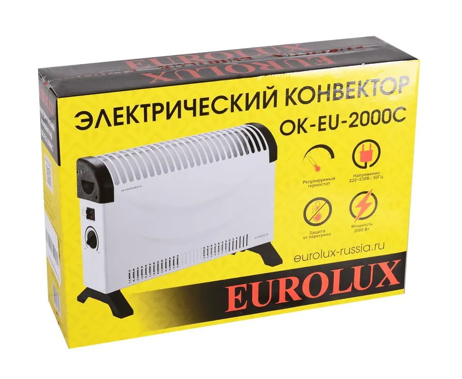Электрический обогреватель Eurolux (Евролюкс) ОК-EU-2000C - обеспечивает простое и точное управление температурным режимом. Клавиши режимов мощности отвечают за ступенчатую настройку: 750, 1250 или 2000 Вт. Регулятор термостата предназначен для плавного изменения температуры нагрева. Механический терморегулятор способен поддерживать температуру с точностью до 1 градуса. Электроконвектор имеет класс защиты IP20: он подходит для комнат, нежилых и офисных помещений с нормальной влажностью. Рекомендуемая площадь обогрева – до 25 м². Есть защита от перегрева.