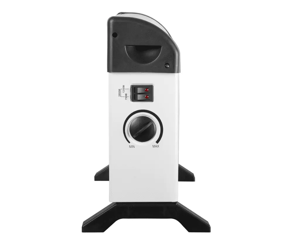 Электроконвектор размещают на полу или на стене и подключают к бытовой электросети 220В. Устойчивые опоры и настенные крепежи входят в стандартную комплектацию. Вес конвектора всего 2,6 кг, его легко переставить из комнаты в комнату. По бокам конвектора есть ручки для переноса.
