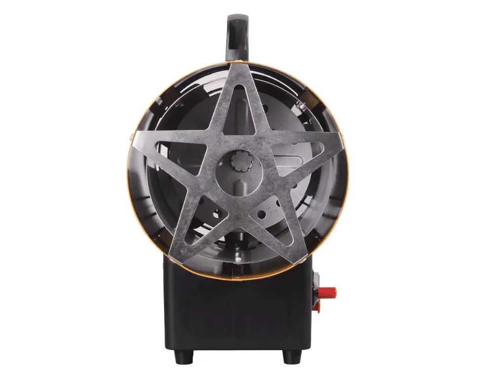 Газовая тепловая пушка имеет малый вес 4.14 кг. Жаропрочный корпус обеспечивает пожарную безопасность. Ручка облегчает транспортировку к месту работы. В комплектацию входит редуктор и соединительный шланг для подачи сжиженного газа из баллона. Агрегат используется в проветриваемых помещениях с возможностью отведения продуктов горения.