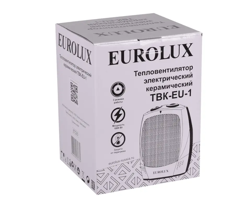 За быстрый нагрев отвечает керамический нагревательный элемент мощностью 1800 Вт. За счет встроенного вентилятора подогретый воздух равномерно распределяется в комнате, благодаря чему легко поддерживать комфортные условия. Предусмотрено несколько режимов работы. При помощи вращающихся регуляторов легко выбрать подходящий. В летнее время Eurolux ТВК-EU-1 может использоваться в качестве вентилятора.