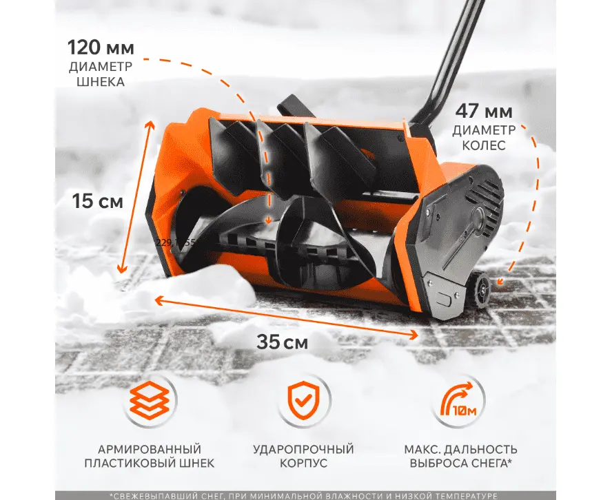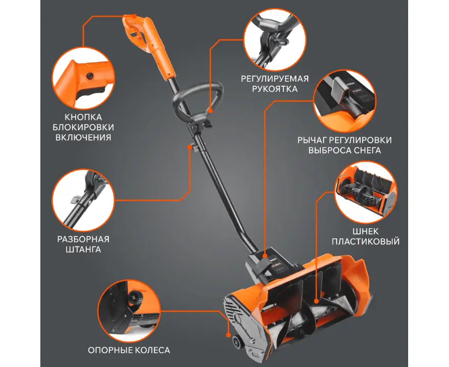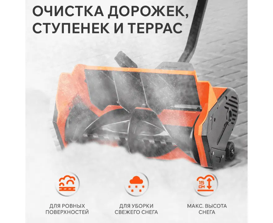 Снегоуборщик Patriot (Патриот) PS 1600 E - предназначен для быстрой очистки небольших территорий на приусадебных участках или городских дворах от рыхлого снега. Небольшой вес обеспечивает максимально комфортную и быструю уборку и снижает нагрузку на оператора. Шнек изготовлен из пластика, безопасного для декоративного покрытия. Рычаг поворота позволяет изменять угол выборса в зависимости от направления уборки.