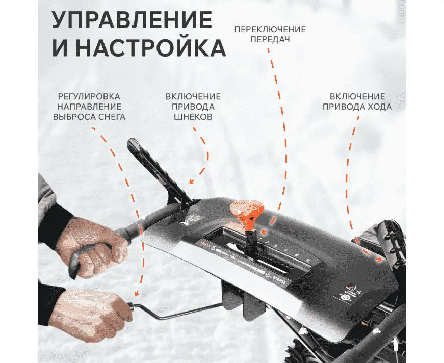 Ручной — оператор толкает сам, двигатель приводит в движение только шнек.