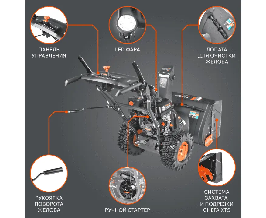 Снегоуборщик Patriot (Патриот) PS 603 LED - прекрасно подходит для очистки дорожек и придомовой территории от снега. Двухступенчатая система со стальным шнеком и регулируемым желобом способна переработать даже толстый слой наста или мокрого снега, а система XTS позволяет увеличить площадь уборки. Созданные для работы в зимних условиях колеса Winter Extreme с гусеничным протектором обеспечат высокую проходимость и маневренность. Управление вынесено на специальную панель, обеспечивающую быстрый доступ ко всем его элементам, а для работы в темное время суток установлена светодиодная фара повышенной яркости.