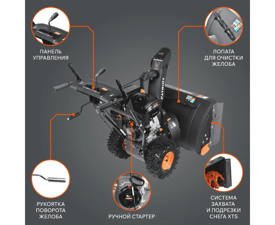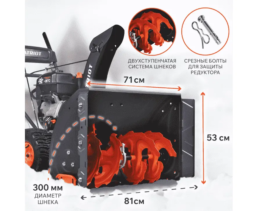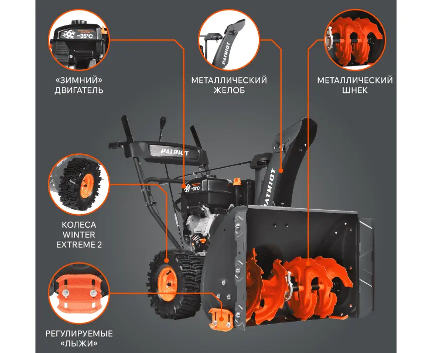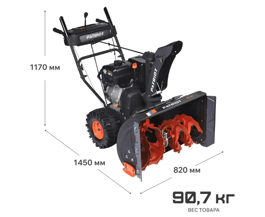 Снегоуборщик Patriot (Патриот) PS 911 - предназначен для регулярного использования в любых условиях для расчистки территории от снега. Двухступенчатая система со стальным шнеком и регулируемым желобом эффективно измельчает даже подтаявший снег и ледяной наст, а система расширителей XTS позволит увеличить эффективность уборки за счёт увеличения рабочей зоны. Созданные для работы в зимних условиях колеса Winter Extreme с гусеничным протектором обеспечат высокую проходимость и маневренность. Двигатель разработан специально для суровых российских зим и выдерживает температуры вплоть до -35 градусов.