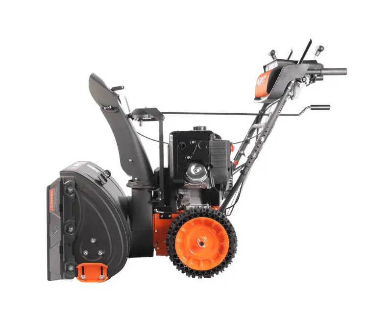 Двухступенчатая — шнек подаёт снег к ротору, который выбрасывает его дальше, справляется с плотным и слежавшимся снегом.