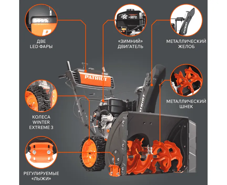 Снегоуборщик Patriot (Патриот) Сибирь 110 E - подходит для уборки снега и расчистки снежных заносов. Высокий зубчатый шнек с агрессивным дизайном перемалывает любой вид снега, включая сырой и обледеневший. Система XTS расширяет возможности для уборки на 10%, увеличивая площадь и высоту захвата. Созданные для работы в зимних условиях колеса серии Winter Extreme с гусеничным протектором гарантируют высокую проходимость и маневренность. Профессиональный двигатель способен работать при температуре до -35 градусов, а функция электростарта позволяет запустить его по нажатию одной кнопки. Для работы в темное время модель оснащена светодиодными фарами и системой подсветки зоны работы двигателя. Управление вынесено на отдельную панель, оснащённую счётчиком моточасов\тахометром и дающую быстрый доступ ко всем его элементам.