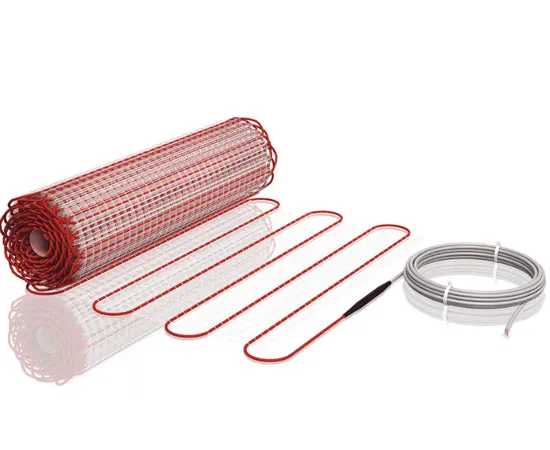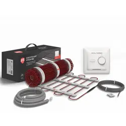 Комплект теплого пола Royal Thermo (Роял Термо) RTFM 2-150-9 с терморегулятором RTI-16 - тонкий двухжильный нагревательный кабель надежно зафиксирован в современной текстильной основе, которая отлично впитывает раствор плиточного клея, образуя единую монолитную структуру без пузырьков воздуха.Муфта, соединяющая нагревательную часть мата и монтажный провод, имеет практически такой же диаметр, как нагревательный кабель: идеальный вариант для укладки с минимальным поднятием уровня пола.
