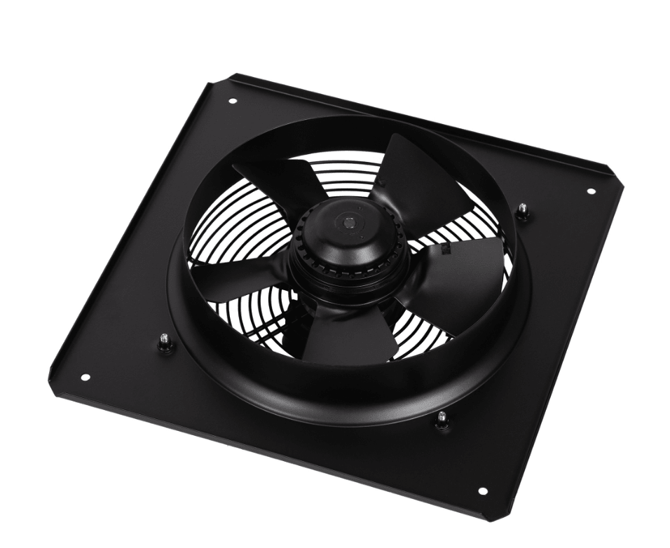 Вентилятор оснащен квадратной монтажной пластиной, благодаря чему их установка осуществляется максимально просто. Детали вентилятора окрашены в стандартный черный цвет. Осевой вентилятор AXW 200-B-2E отлично подходит для применения в производственных, складских и крупных торговых помещениях.