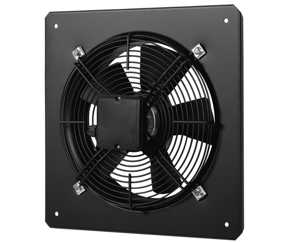 Вентилятор оснащен квадратной монтажной пластиной, благодаря чему их установка осуществляется максимально просто. Детали вентилятора окрашены в стандартный черный цвет. Осевой вентилятор AXW 300-4E отлично подходит для применения в производственных, складских и крупных торговых помещениях.