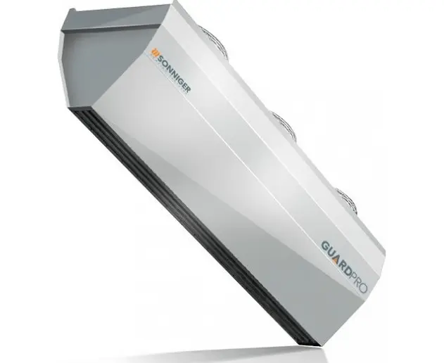 Воздушная завеса Sonniger GUARD PRO обеспечивает защиту проемов высотой 9 м. Данные завесы предназначены для таких помещений как производственные и складские комплексы, ремонтные депо, автобусные парки, ангары. Благодаря классу защиты IP 54 завесы можно устанавливать во влажных и сильно запыленных помещениях, например на автомойках.