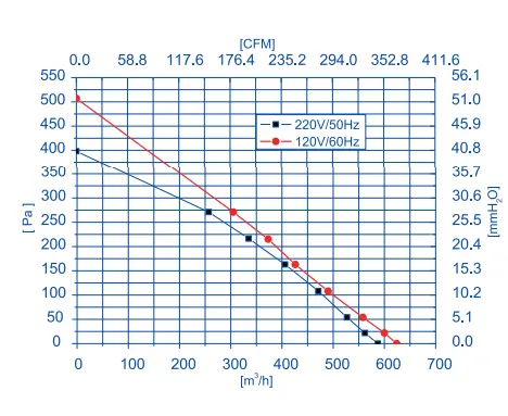 Благодаря центробежной конструкции вентилятор обеспечивает стабильный воздушный поток 680 м³/ч.