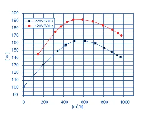 Благодаря центробежной конструкции вентилятор обеспечивает стабильный воздушный поток 970 м³/ч.